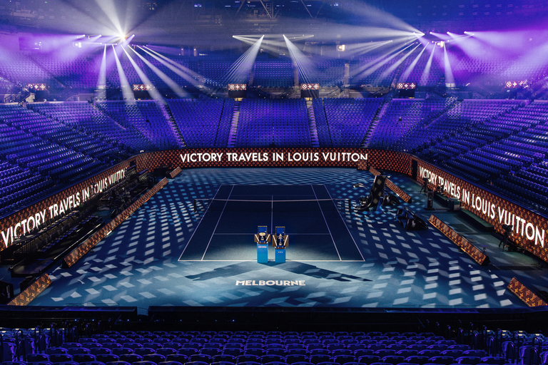 Criado manualmente pelos artesãos da Louis Vuitton no histórico ateliê de Asnières, o Trophy Trunk foi projetado para guardar e transportar o Norman Brookes Challenge Cup com sofisticação e segurança. Adornado com o emblemático padrão Monograma, o baú incorpora os fechos e acabamentos tradicionais da Maison, datados da década de 1860. Seus dois painéis frontais se abrem para revelar o troféu, decorados com o estilizado “V”, que simboliza “Vitória” e “Vuitton”. O interior é forrado em microfibra azul, na tonalidade oficial do Australian Open, e exibe o logotipo do torneio em branco, unindo funcionalidade e design atemporal.