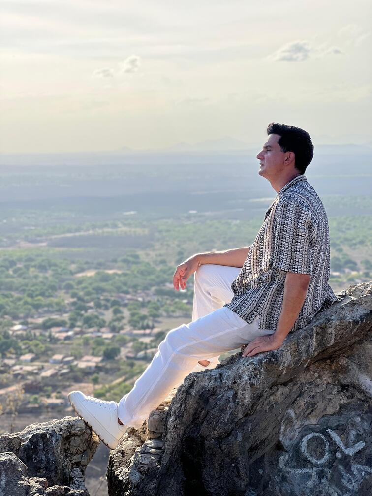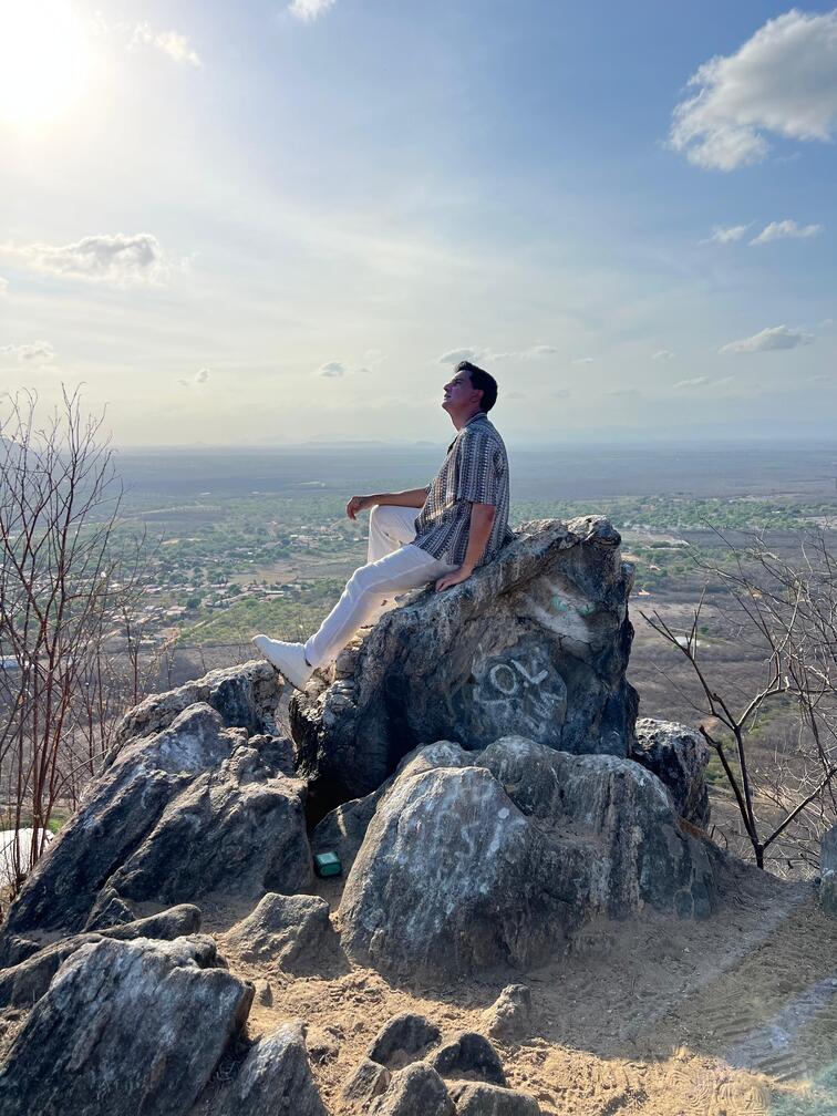 Pianista Paulo Rodrigo no topo do serrote de Ocara