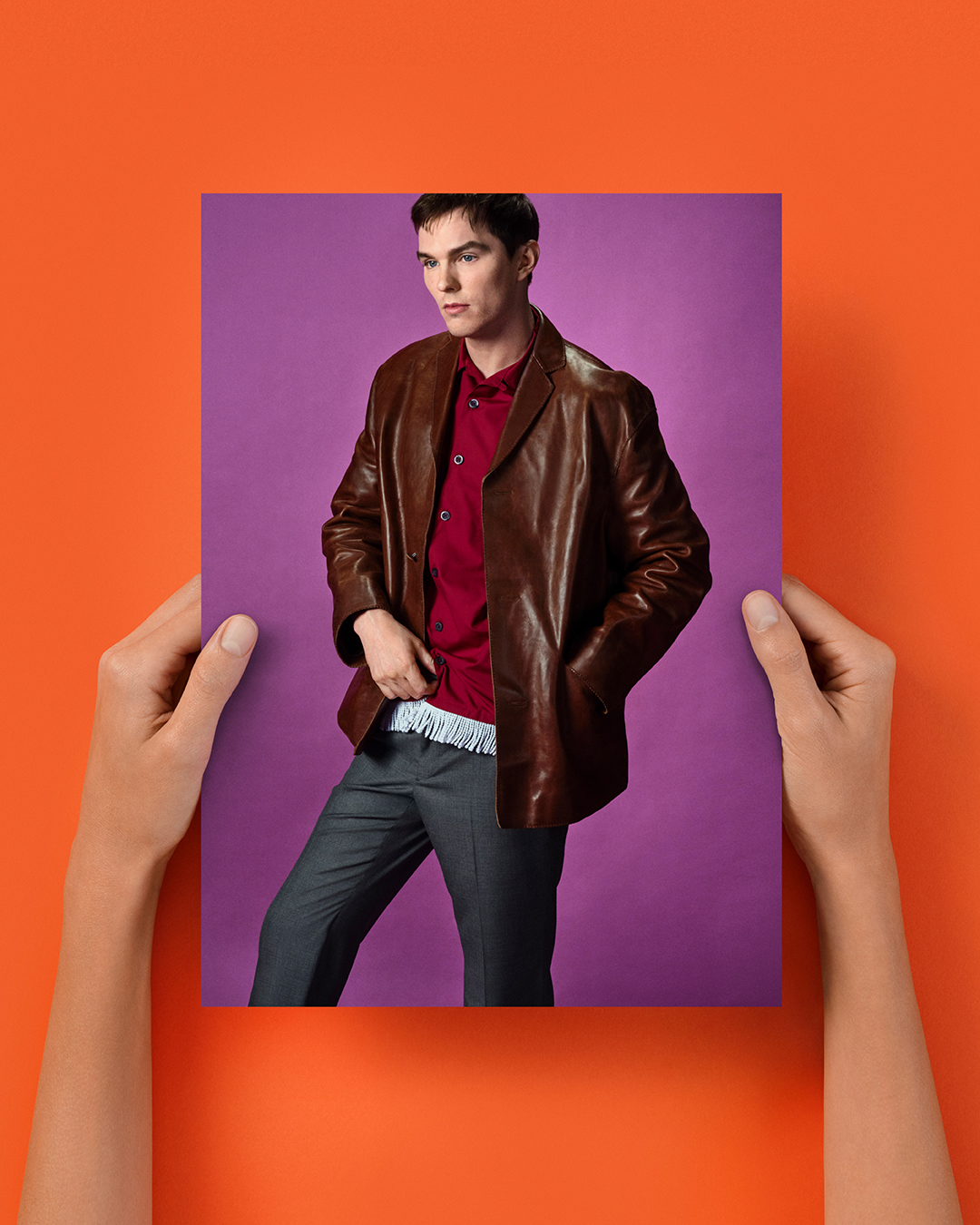 A Prada lança sua campanha de primavera 2026, intitulada “Imagem de uma Imagem”, sob a direção criativa de Miuccia Prada e Raf Simons, trazendo uma reflexão sobre o papel da publicidade contemporânea. O projeto, assinado pela artista Anne Collier, transforma fotografias em objetos físicos: mãos com luvas coloridas seguram imagens da coleção sobre fundos laranja vibrante, capturadas pelo fotógrafo Oliver Hadlee Pearch. Segundo a maison, essas imagens funcionam como “um reflexo de nós mesmos enquanto espectadores, admiradas e talvez desejadas”.