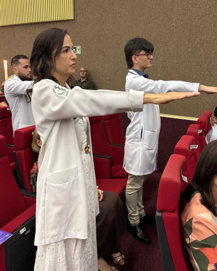 Em um gesto simbólico e carregado de emoção, Lia recebeu o estetoscópio das mãos de sua mãe, a quem define como “grande intercessora, exemplo e motivadora de todos os dias”, destacando a força da história, do amor e da fé que a acompanham nessa caminhada.