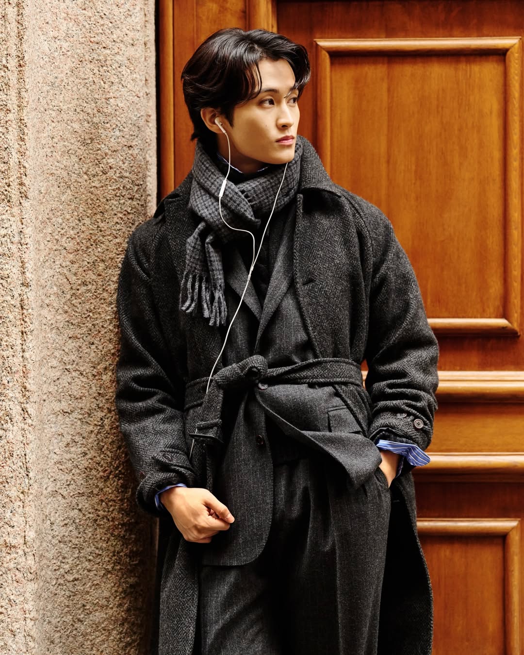 Na Purple Label, o luxo se expressa no equilíbrio entre visual e toque. A alfaiataria aparece mais fluida e desestruturada, com destaque para tecidos nobres como o cashmere penteado, que atualiza clássicos como o xadrez Príncipe de Gales. Peças casuais de alto padrão, como calças de moletom em cashmere dupla face, ampliam a ideia de elegância sem rigidez.