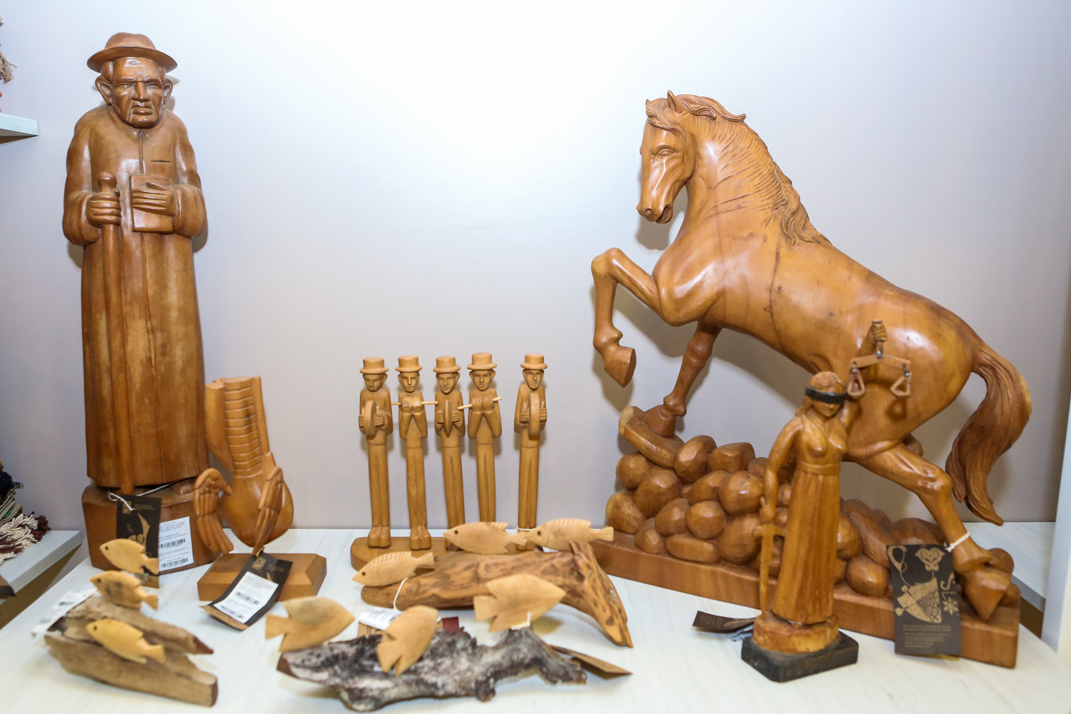Lá, é possível encontrar móveis, sandálias, bolsas e vestuários de couro de artesãos do Crato, Nova Olinda e Aracati, esculturas de madeira e xilogravuras de Juazeiro do Norte, pilão, bandejas e tábuas de madeira com frases de Belchior e Patativa do Assaré e temas sertanejos produzidos em Fortaleza e Tururu, além de muitas outras peças com a qualidade do selo CeArt.