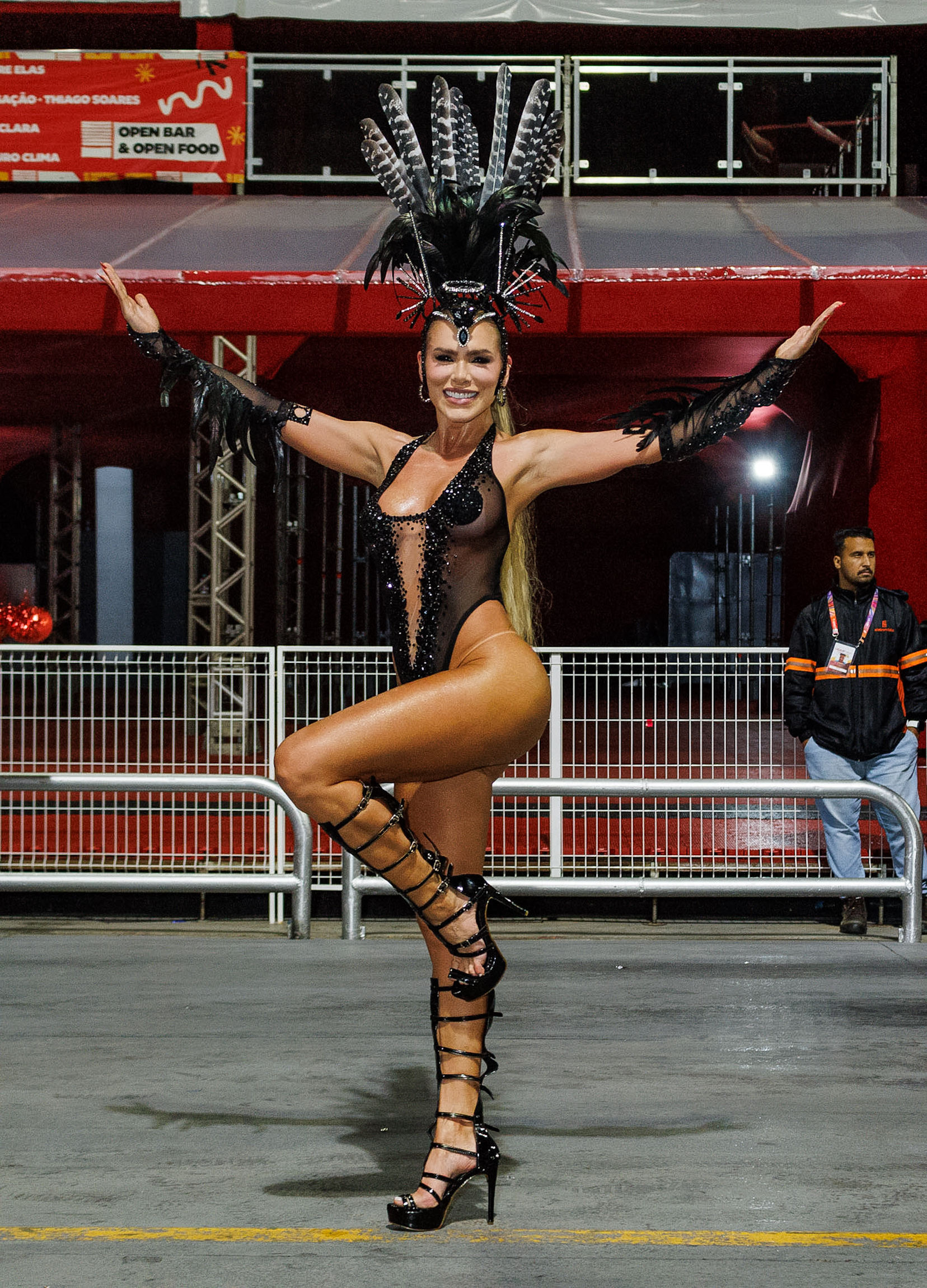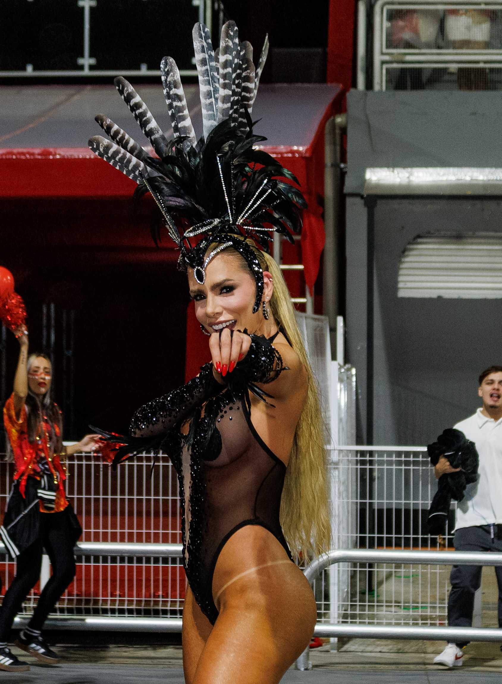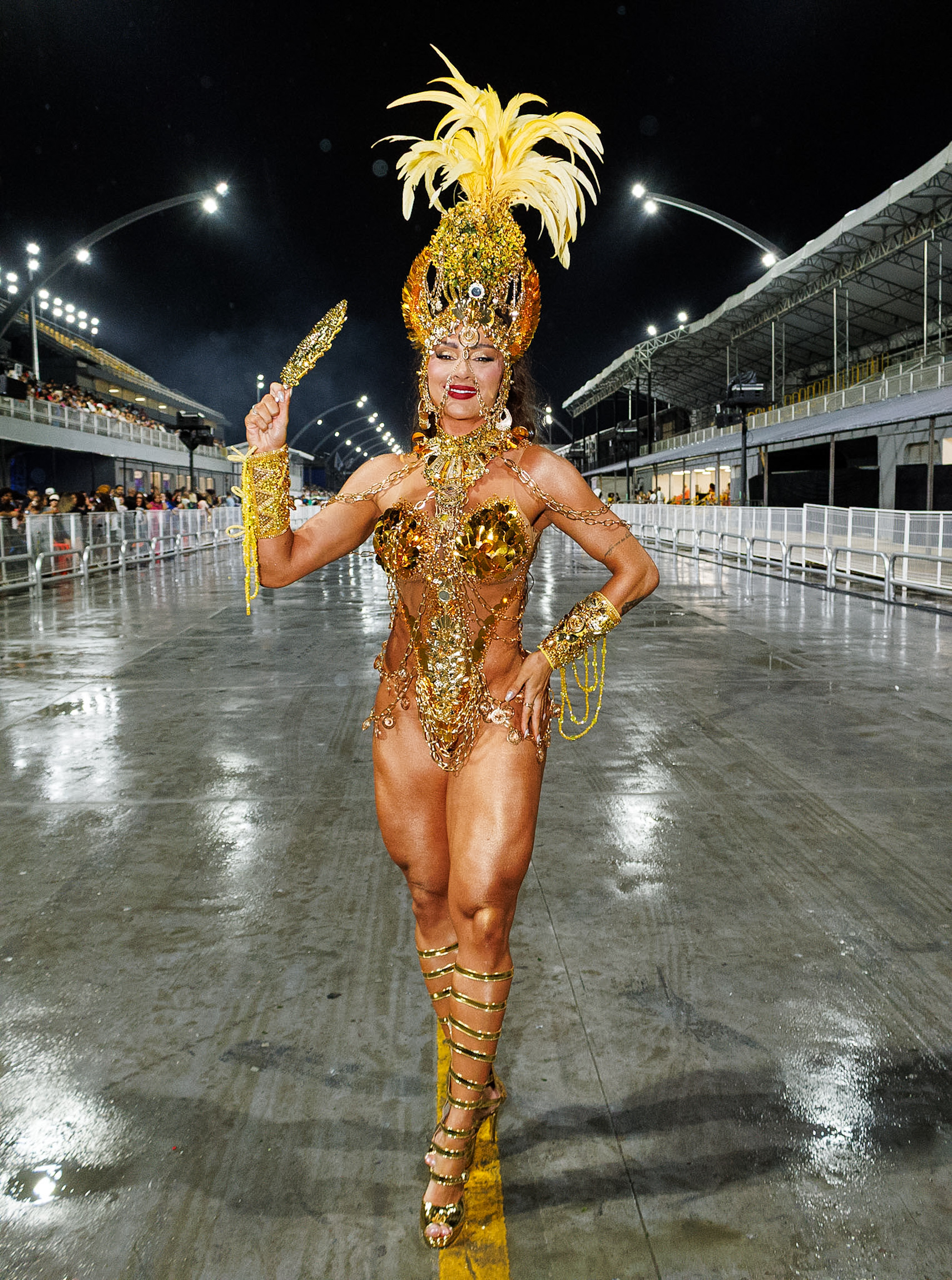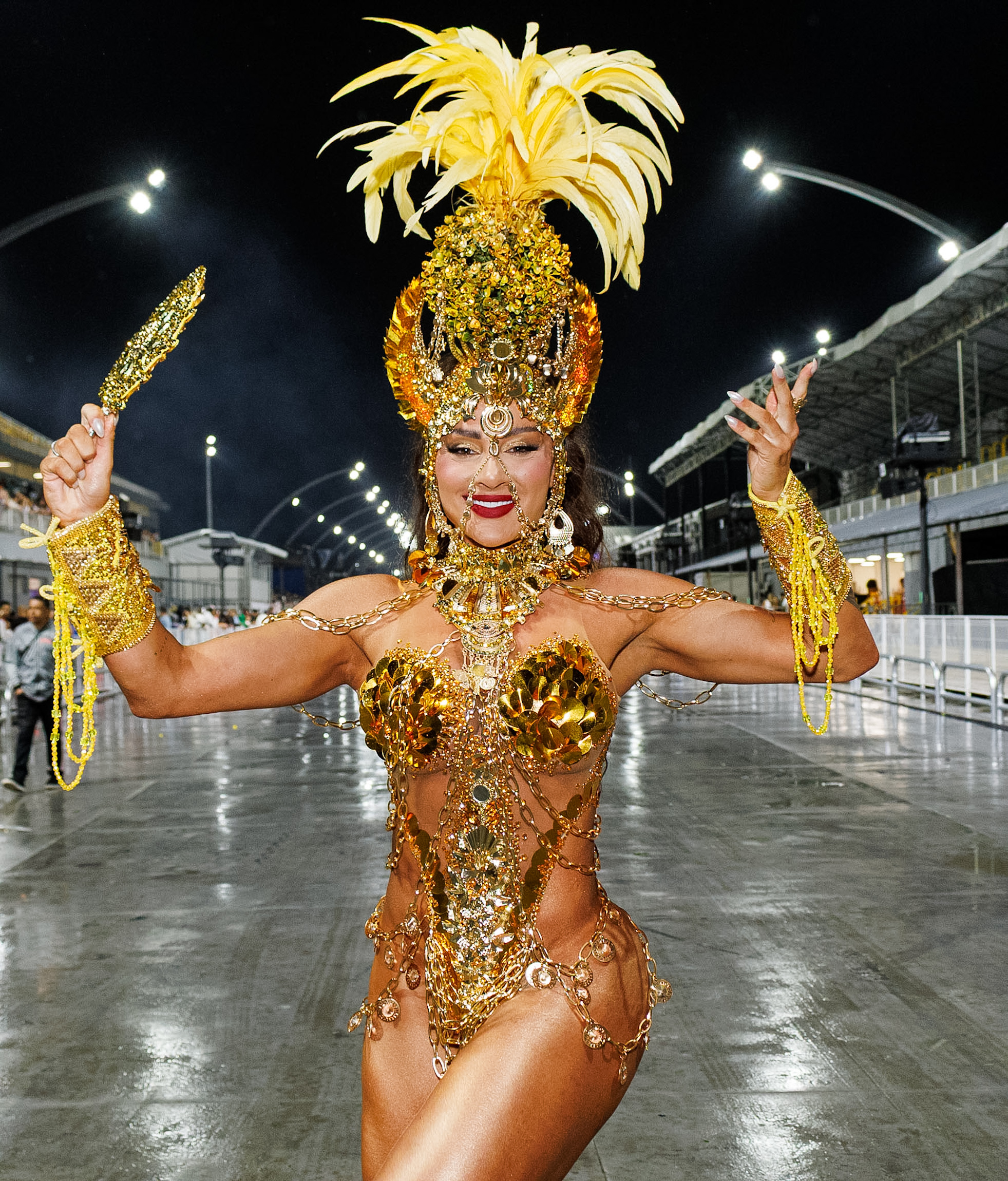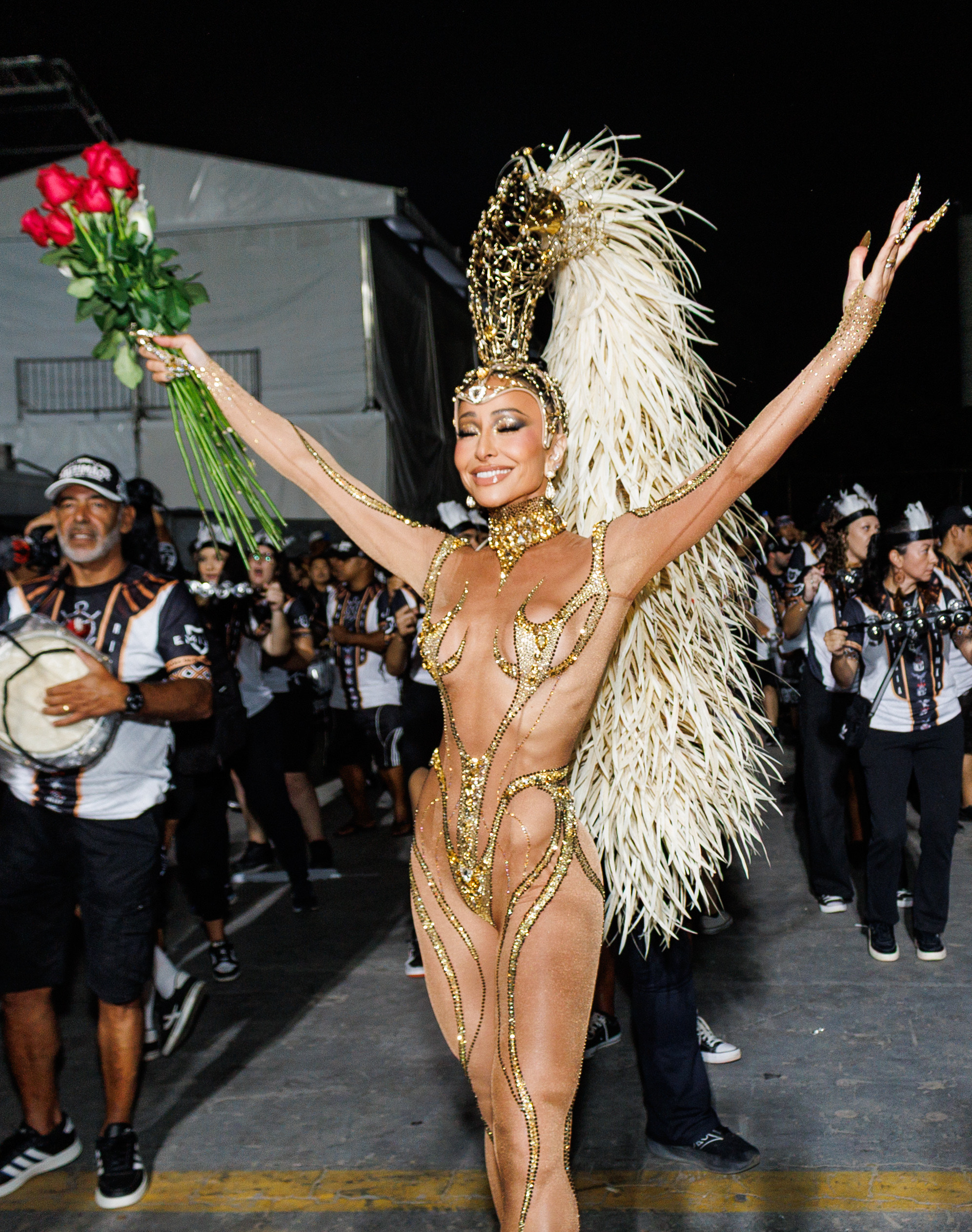 A avenida ainda recebeu Thelminha, rainha da Mocidade Alegre, acompanhando de perto cada detalhe da preparação da escola, em uma presença que mistura carisma e disciplina. Juju Salimeni, por sua vez, comandou a Barroca Zona Sul em um desfile dedicado a Oxum, exaltando águas doces, beleza e fertilidade, conectando espiritualidade e estética.
