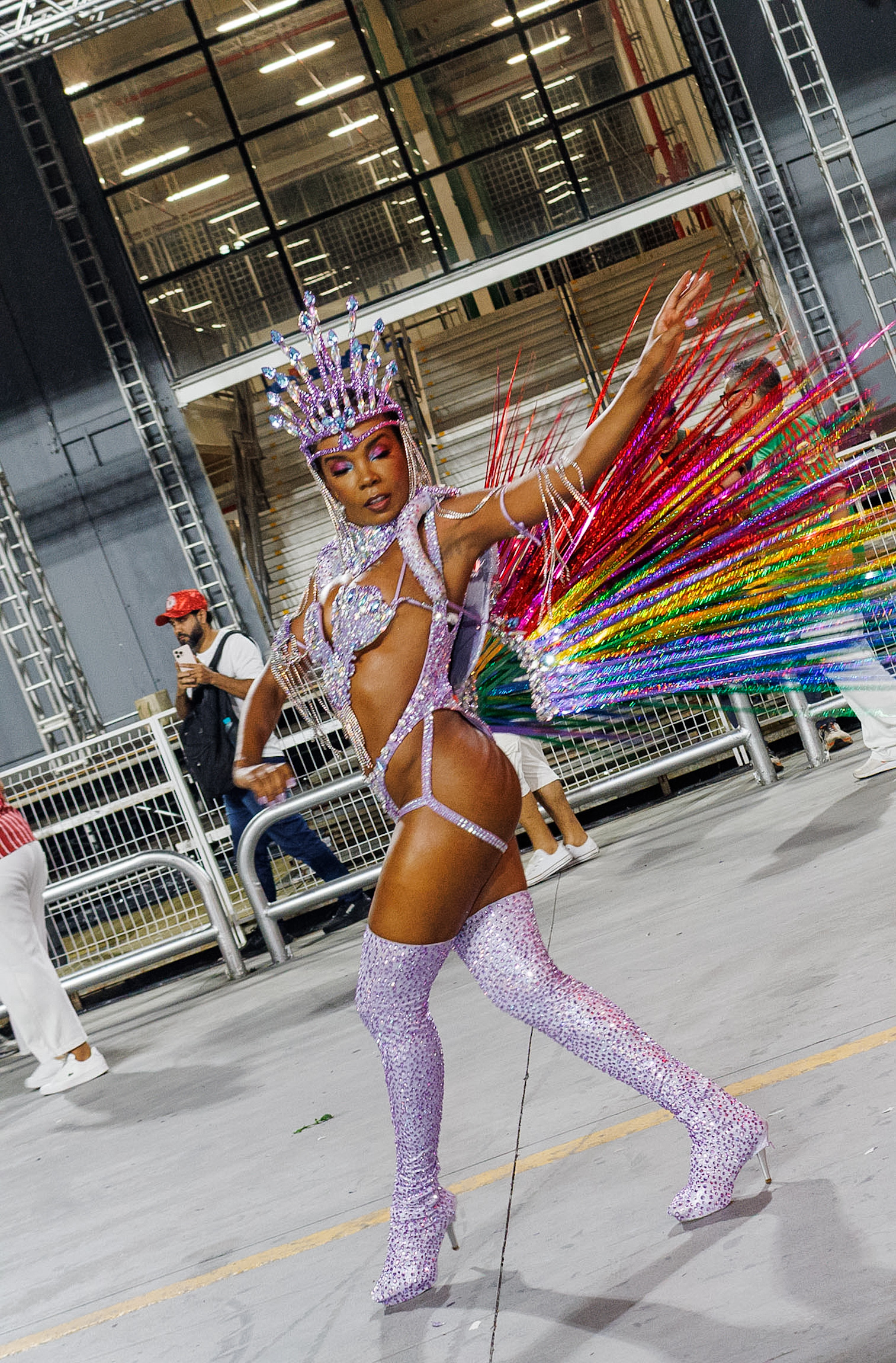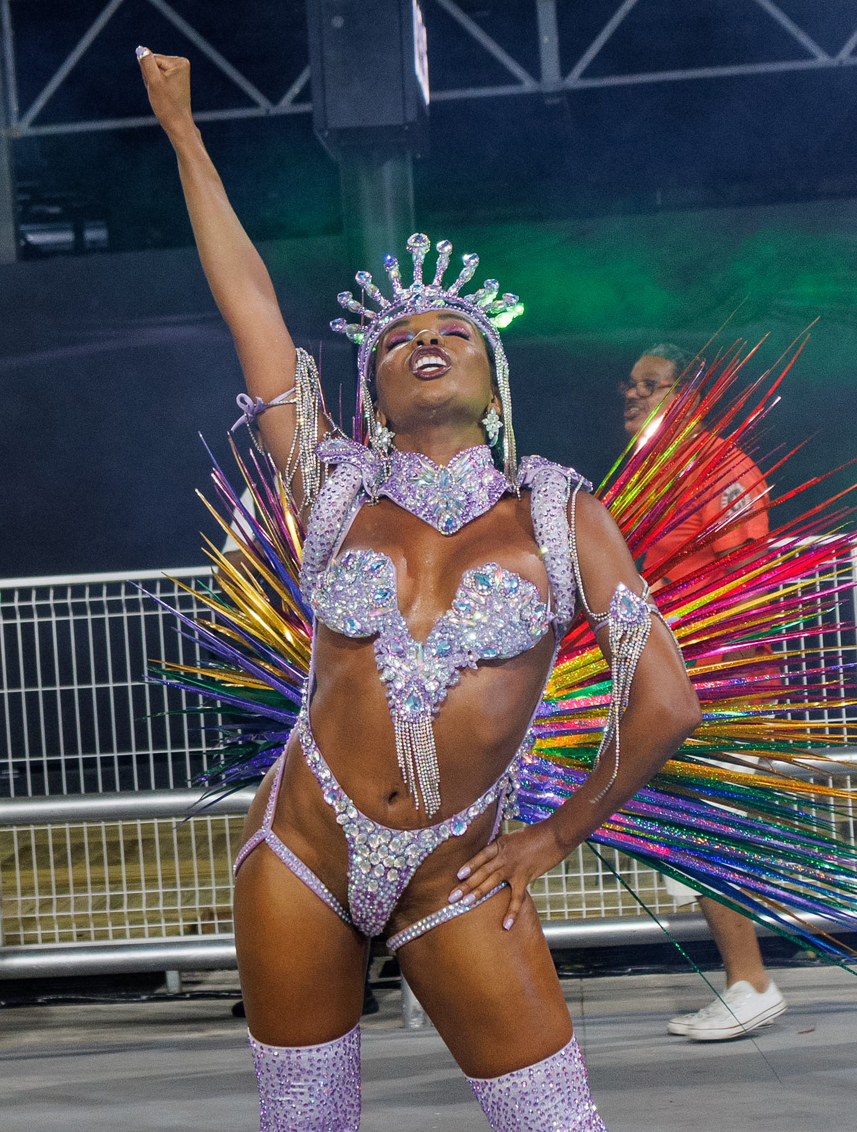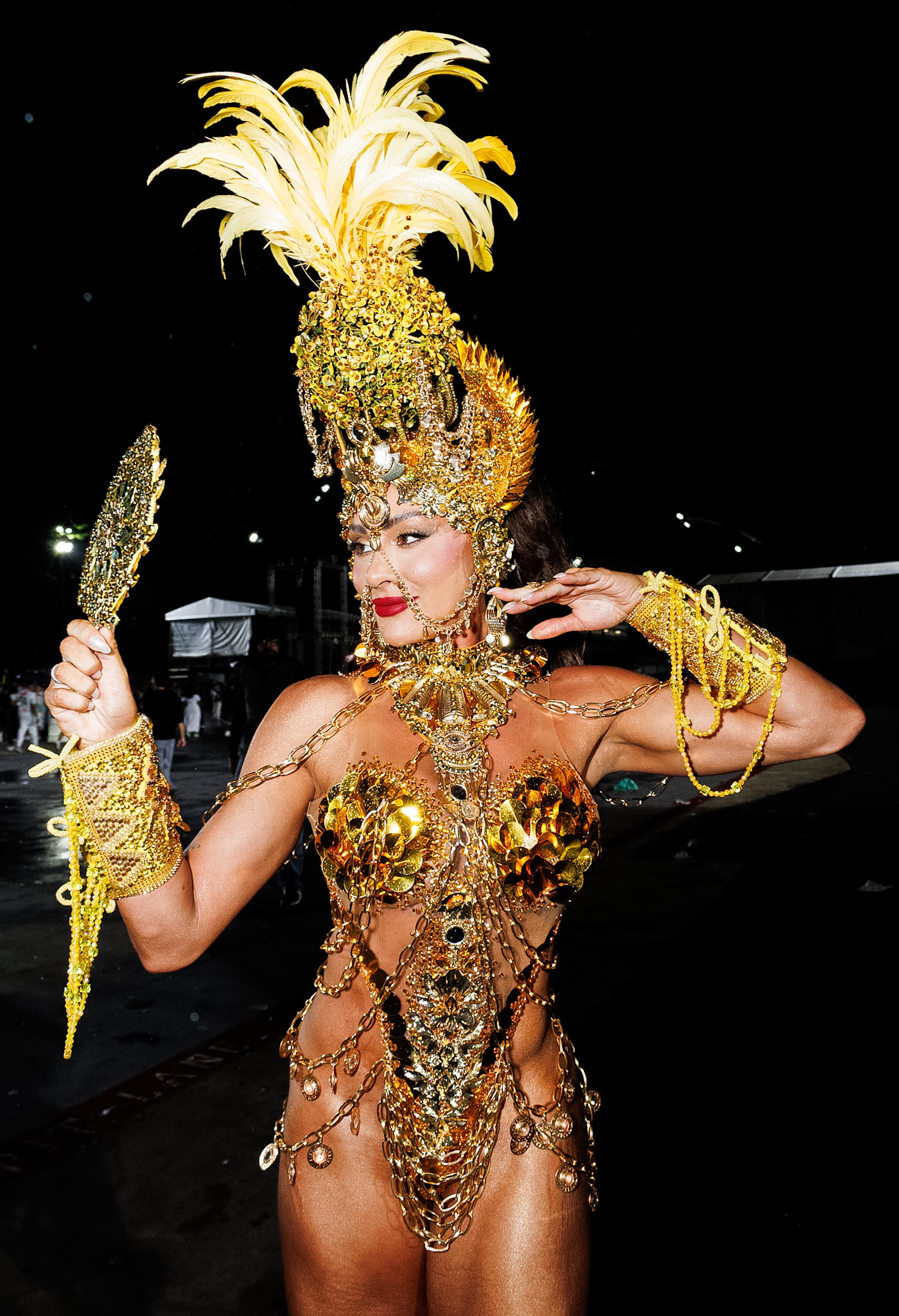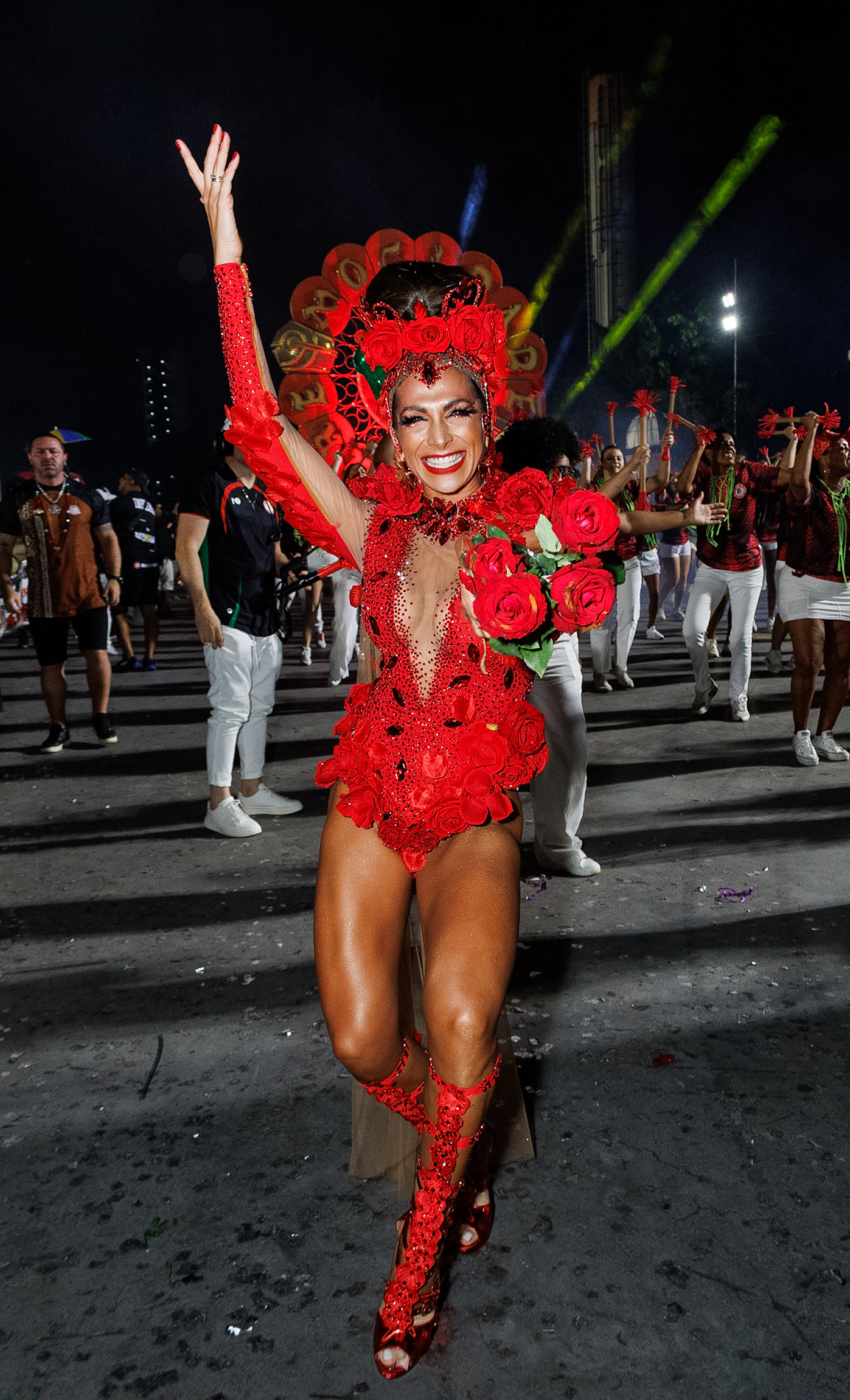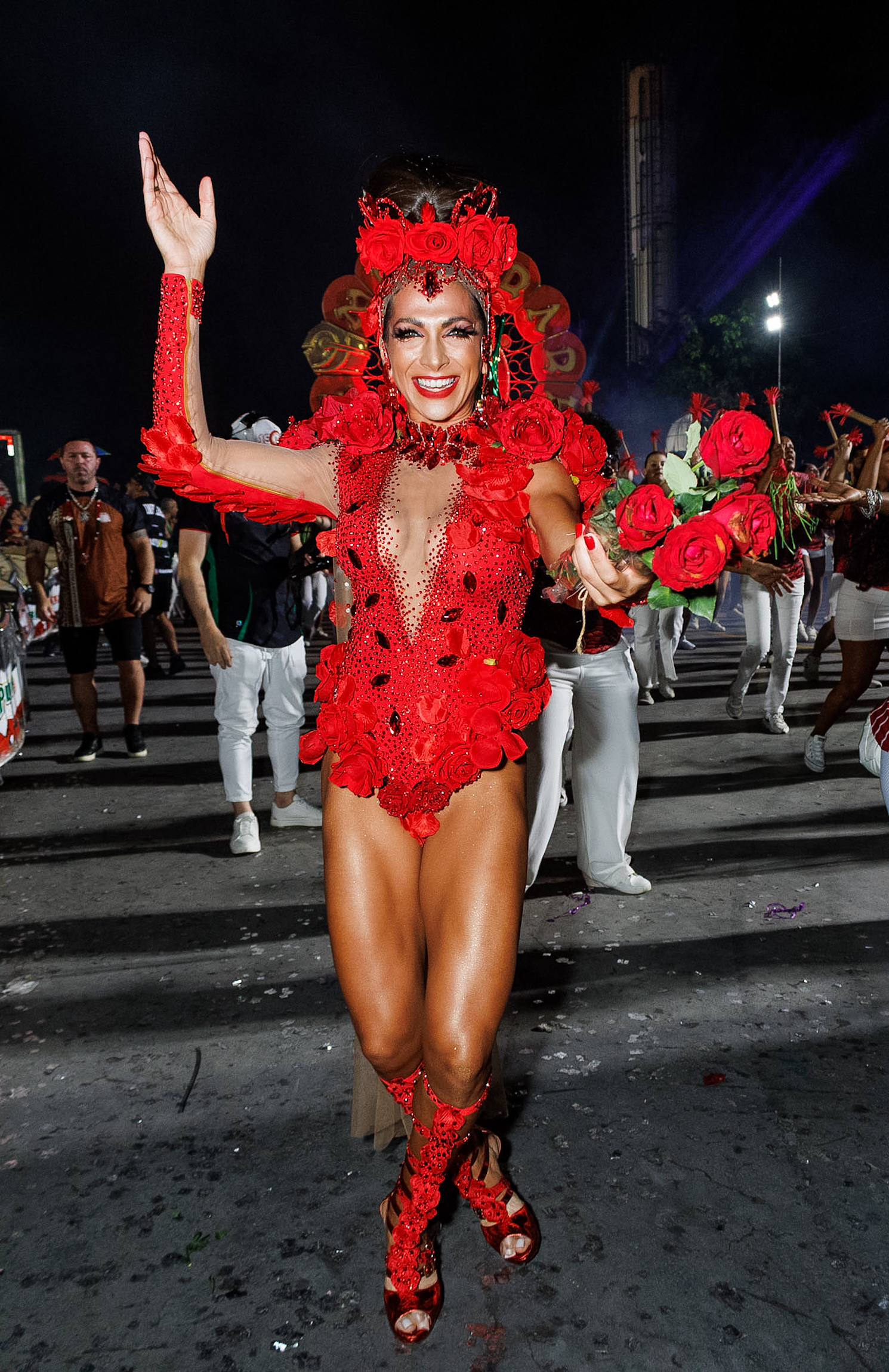 A avenida ainda recebeu Thelminha, rainha da Mocidade Alegre, acompanhando de perto cada detalhe da preparação da escola, em uma presença que mistura carisma e disciplina. Juju Salimeni, por sua vez, comandou a Barroca Zona Sul em um desfile dedicado a Oxum, exaltando águas doces, beleza e fertilidade, conectando espiritualidade e estética.