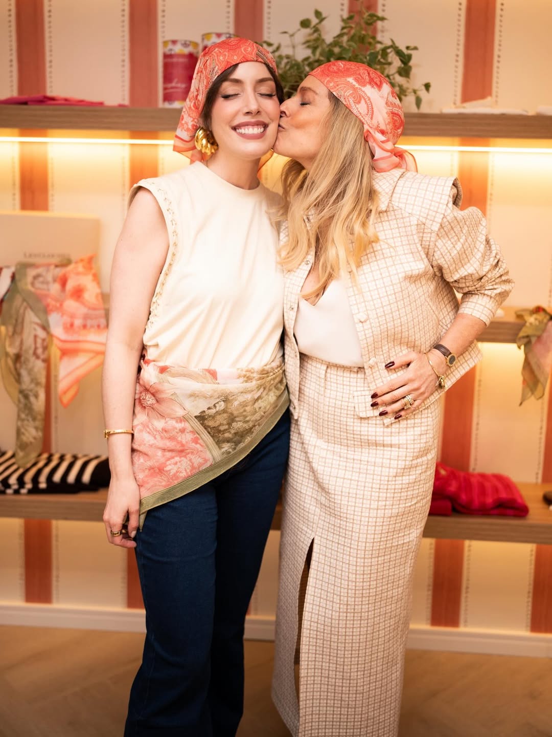 Sacha Chryzman acompanha Fabiana Justus no lançamento de lenços solidários em evento da Abrale