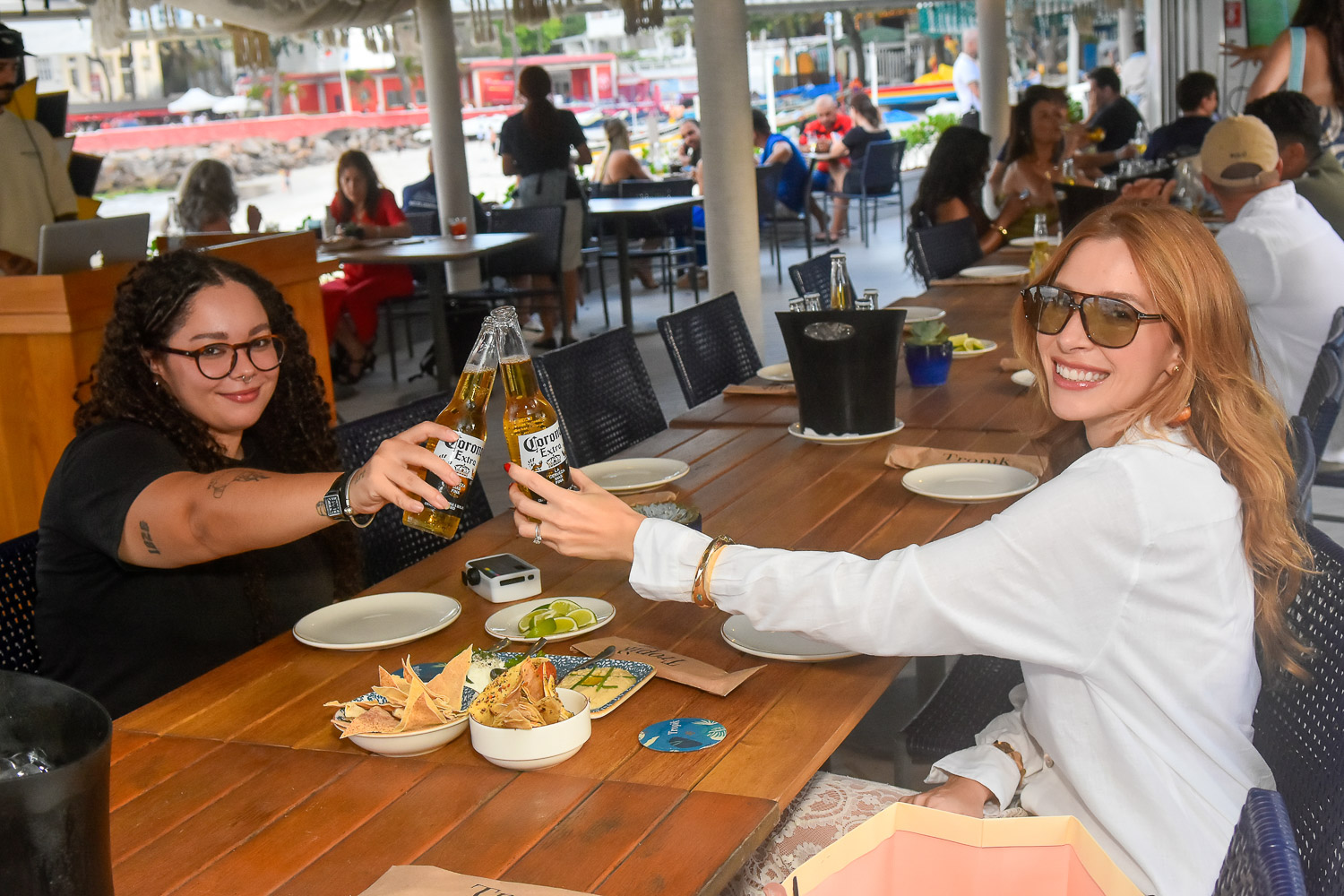 Mariana Ramires e Cecília Coimbra brindaram ao sunset de celebração dos 100 anos da Corona no Tropìk Beach Club, em Copacabana – Foto: Reginaldo Teixeira