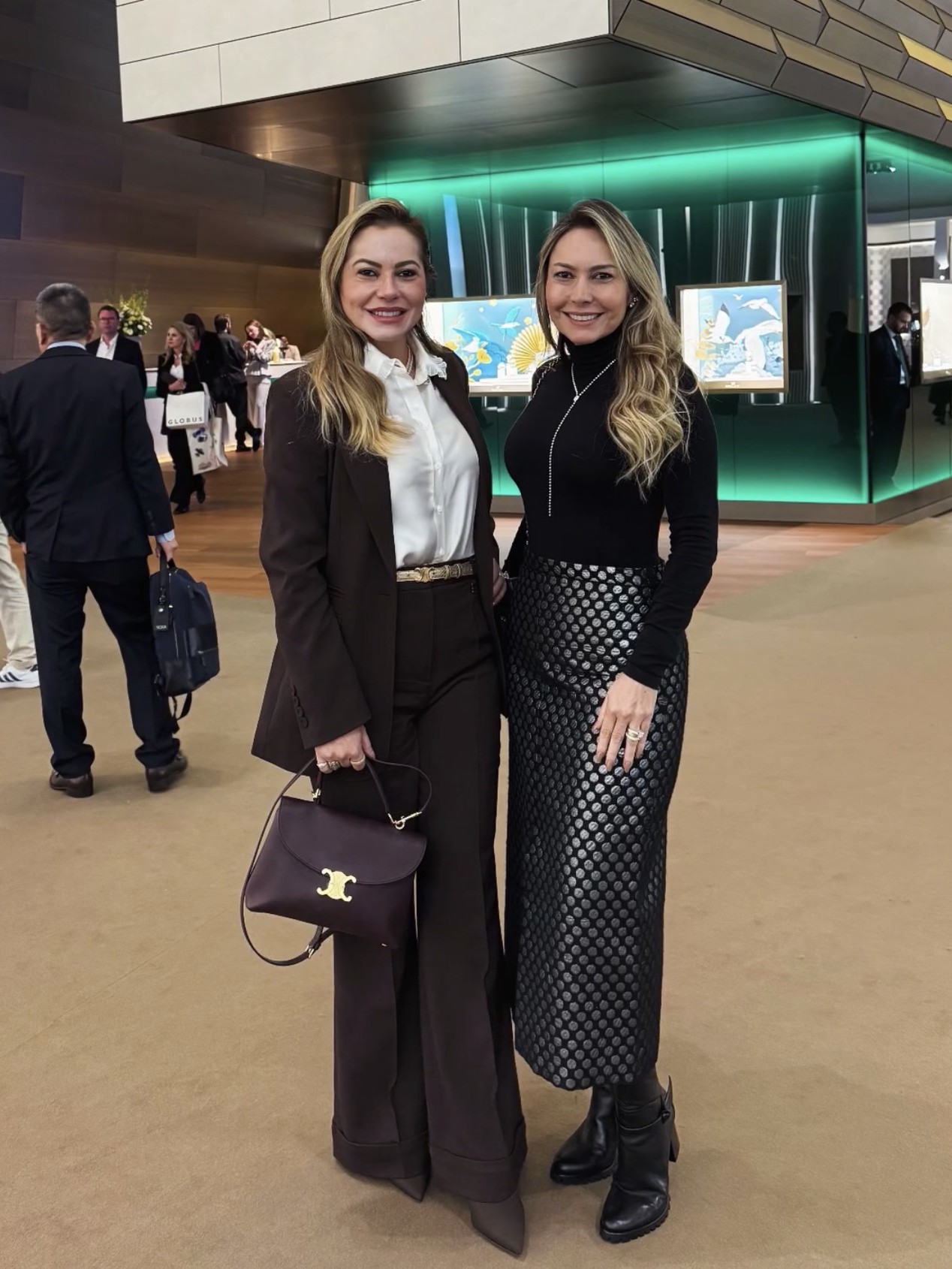 A primeira parada das empresárias no circuito foi na Cartier Touch and Try, experiência que propõe contato direto com as peças e aproxima o olhar técnico de uma leitura mais sensorial, alinhada ao reposicionamento das maisons.