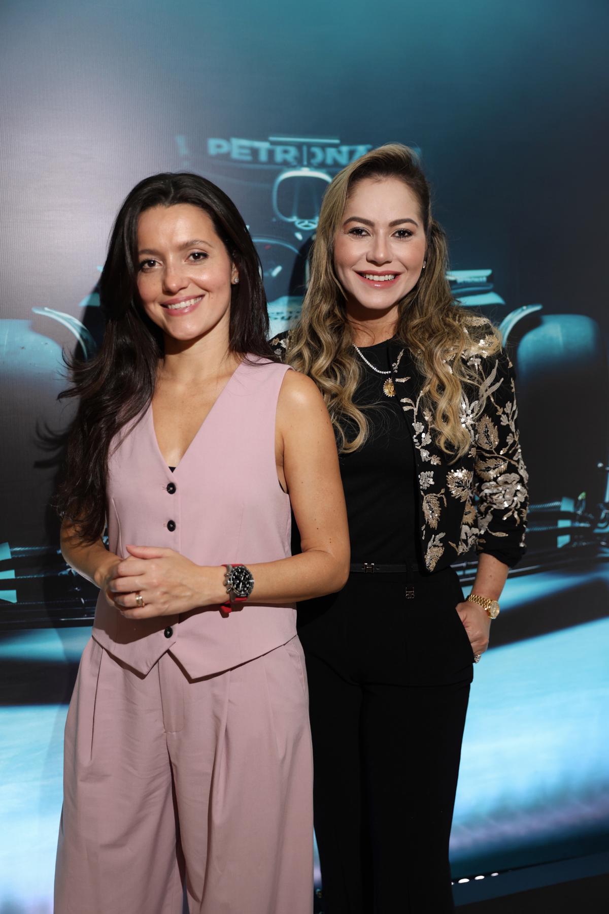 Deborah Maldonado e Talyzie Mihaliuc no evento pré-GP de Fórmula 1 promovido pela IWC Schaffhausen