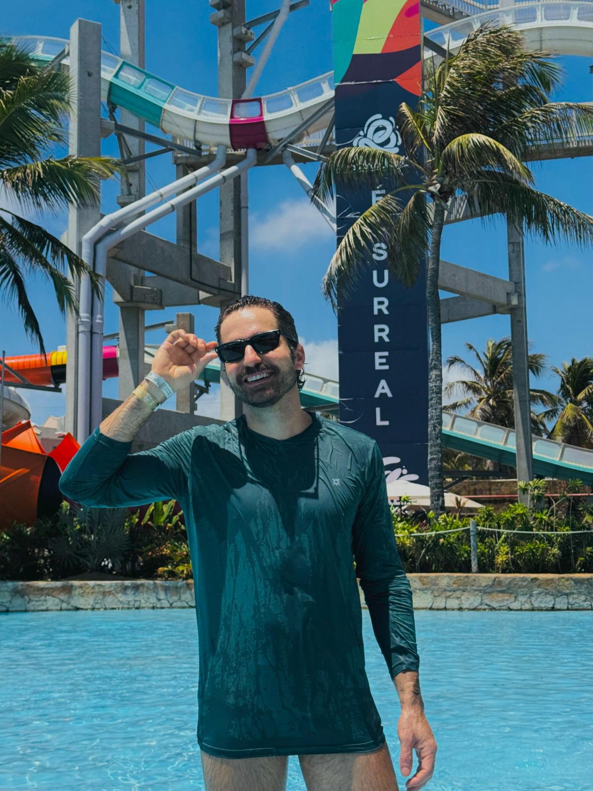 O fim de semana seguiu com momentos de diversão no Aqua Park, eleito em 2025 o segundo melhor parque aquático do mundo pelo TripAdvisor. Entre as mais de 30 atrações, a família conheceu a Surreal, montanha-russa aquática mais alta do planeta, e aproveitou a praia, a piscina de borda infinita e as áreas de lazer do resort.