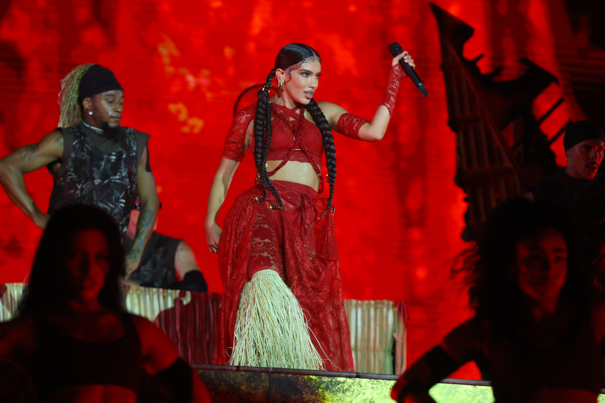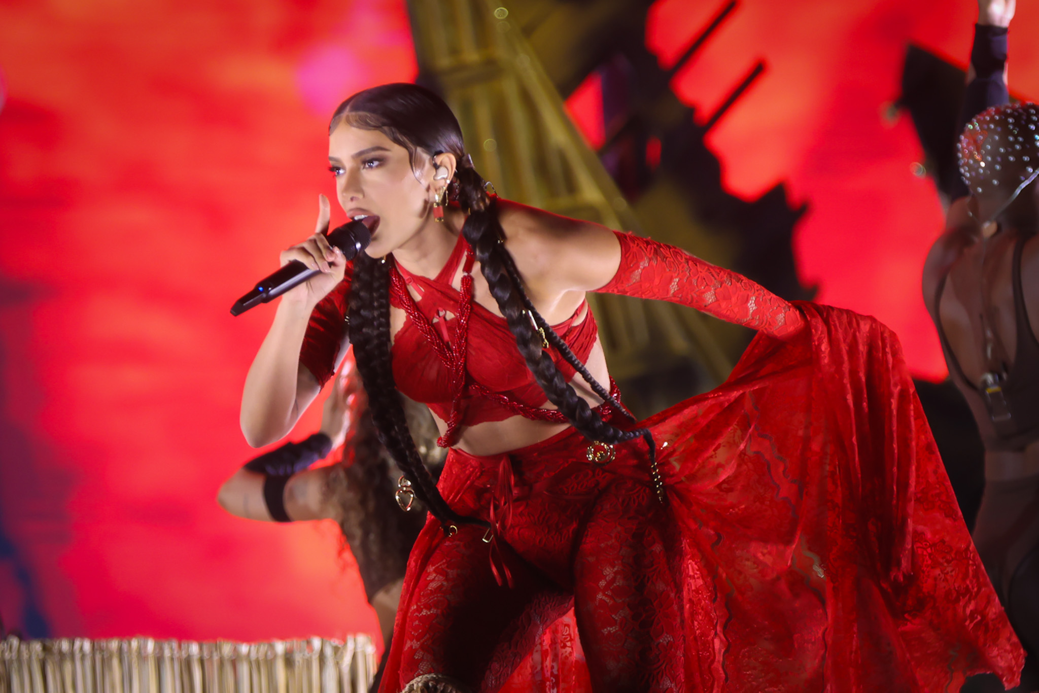 Após o set de abertura, a cantora retornou ao palco em dois momentos do show principal. Participou de “São Paulo”, lançada no álbum Hurry Up Tomorrow (2025), e voltou para a estreia da nova faixa ao lado de The Weeknd.