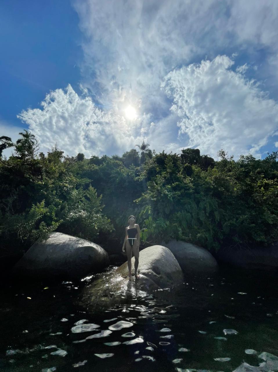 A collab, que será lançada como uma coleção capsula nesta quinta-feira (18) – data mais que especial para Thayne, que celebra a nova idade – apresenta um mix de preto e off white em biquínis, maiôs e lenços, e foram fotografas em Angra dos Reis.