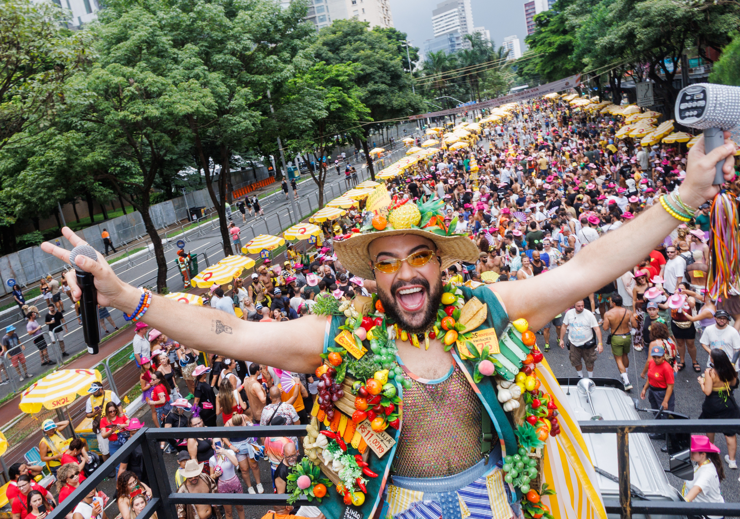 Tiago Abravanel comanda o Bloco do Abrava e anima foliões no pré-carnaval de São Paulo.
