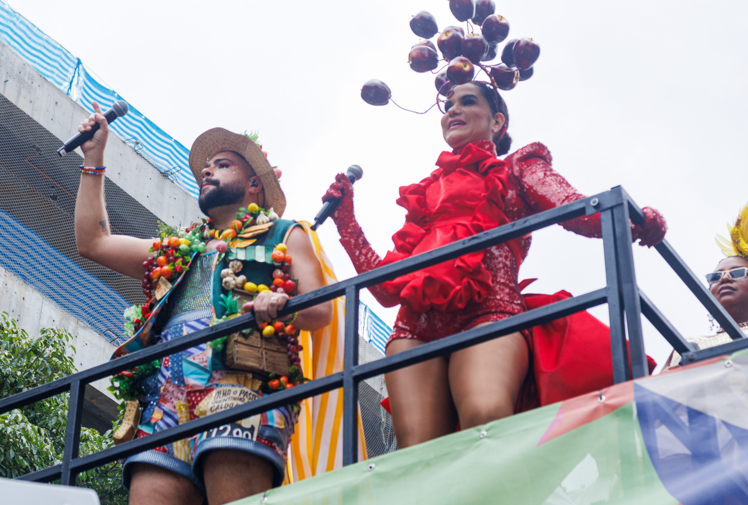 Com o tema “É dia de feira”, o artista apostou em figurinos e elementos visuais inspirados nas cores e no clima das feiras populares, traduzindo essa estética para a avenida. O repertório refletiu a proposta diversa do bloco, misturando funk, axé, pagode, marchinhas e clássicos de Tim Maia, em uma sequência que manteve o público em ritmo de festa.