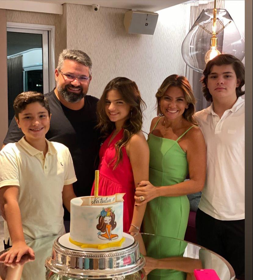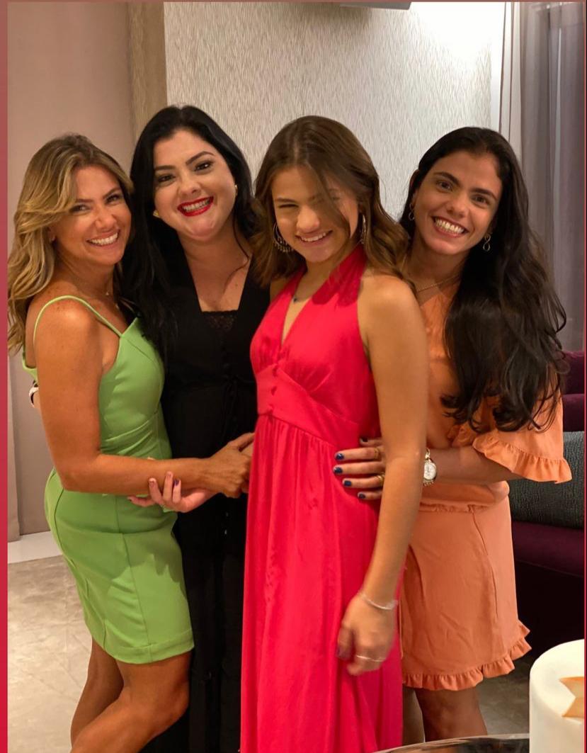 A sessão parabéns, com direito a bolo assinado por Adriana Pessoa, contou com a presença dos irmãos, Pedro Henrique e Deusmar Neto, das tias, Viviane e Virginia Almada, além de outros convidados íntimos da família.