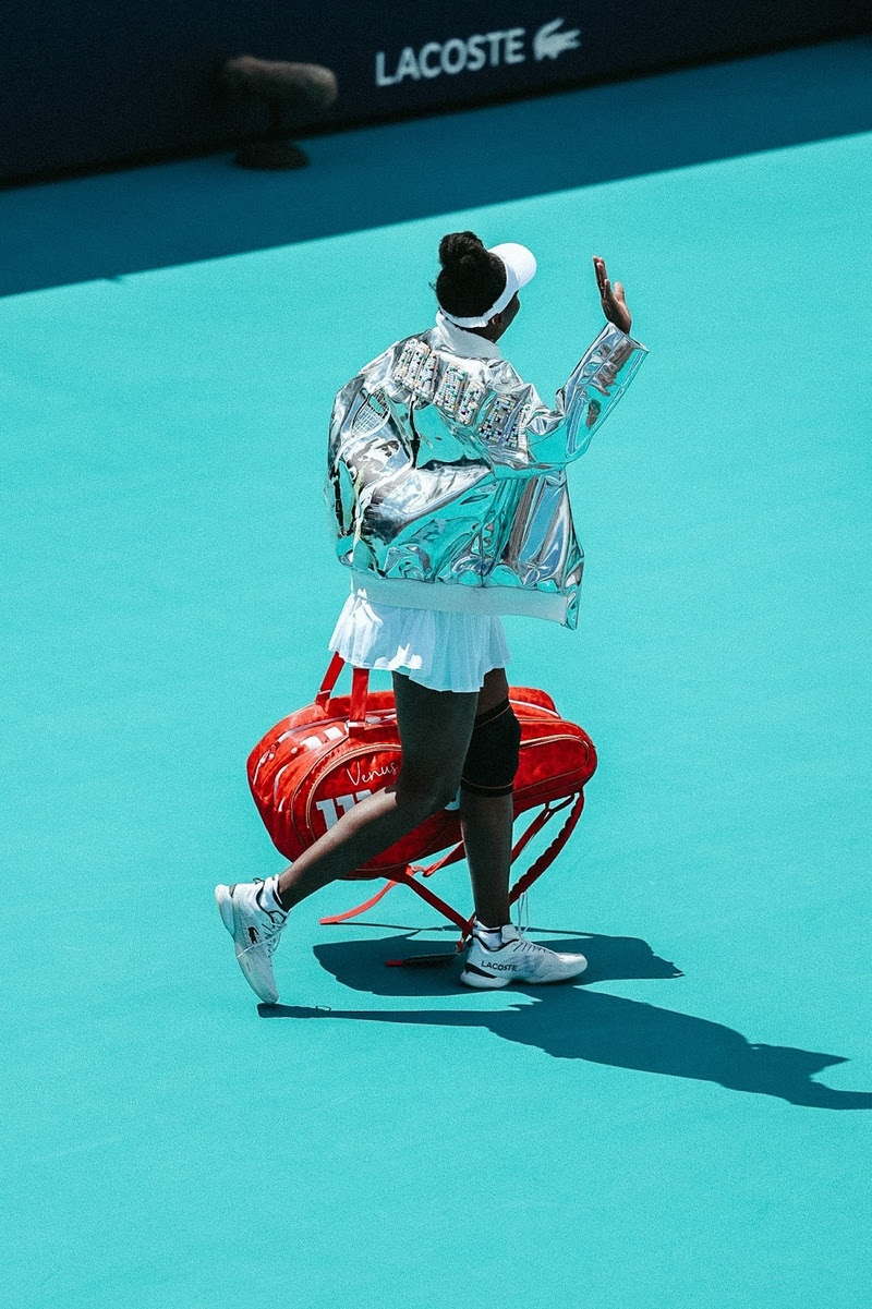 Venus Williams entra em quadra com jaqueta exclusiva da Lacoste no Miami Open 2026