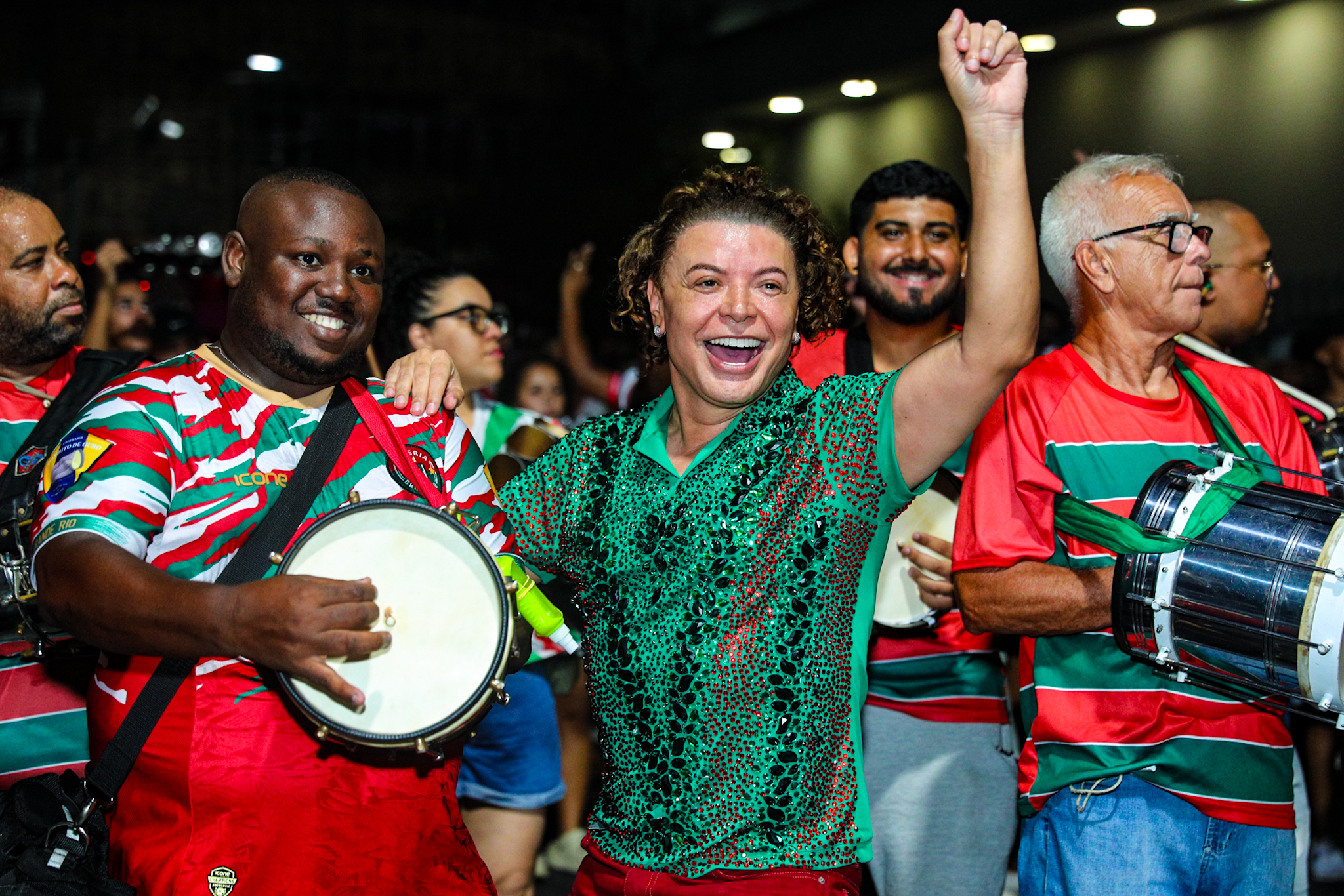 Quem também acompanhou o ensaio foi David Brazil, figura conhecida do carnaval carioca, que prestigiou a escola de Duque de Caxias e interagiu com integrantes e convidados.