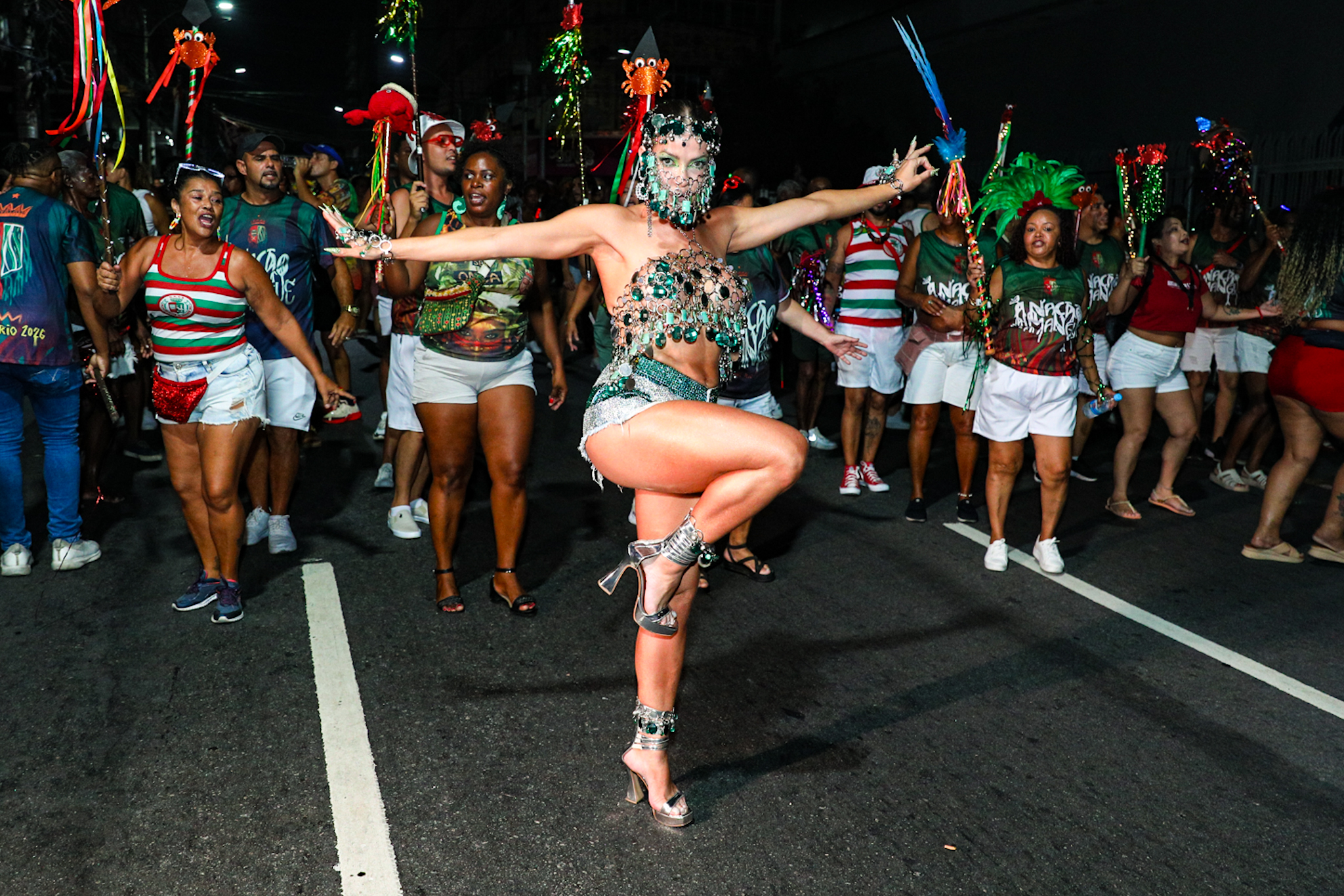 Musas da Grande Rio participam de ensaio de rua neste domingo (11). Fotos: Victor Chapetta / Brazil News