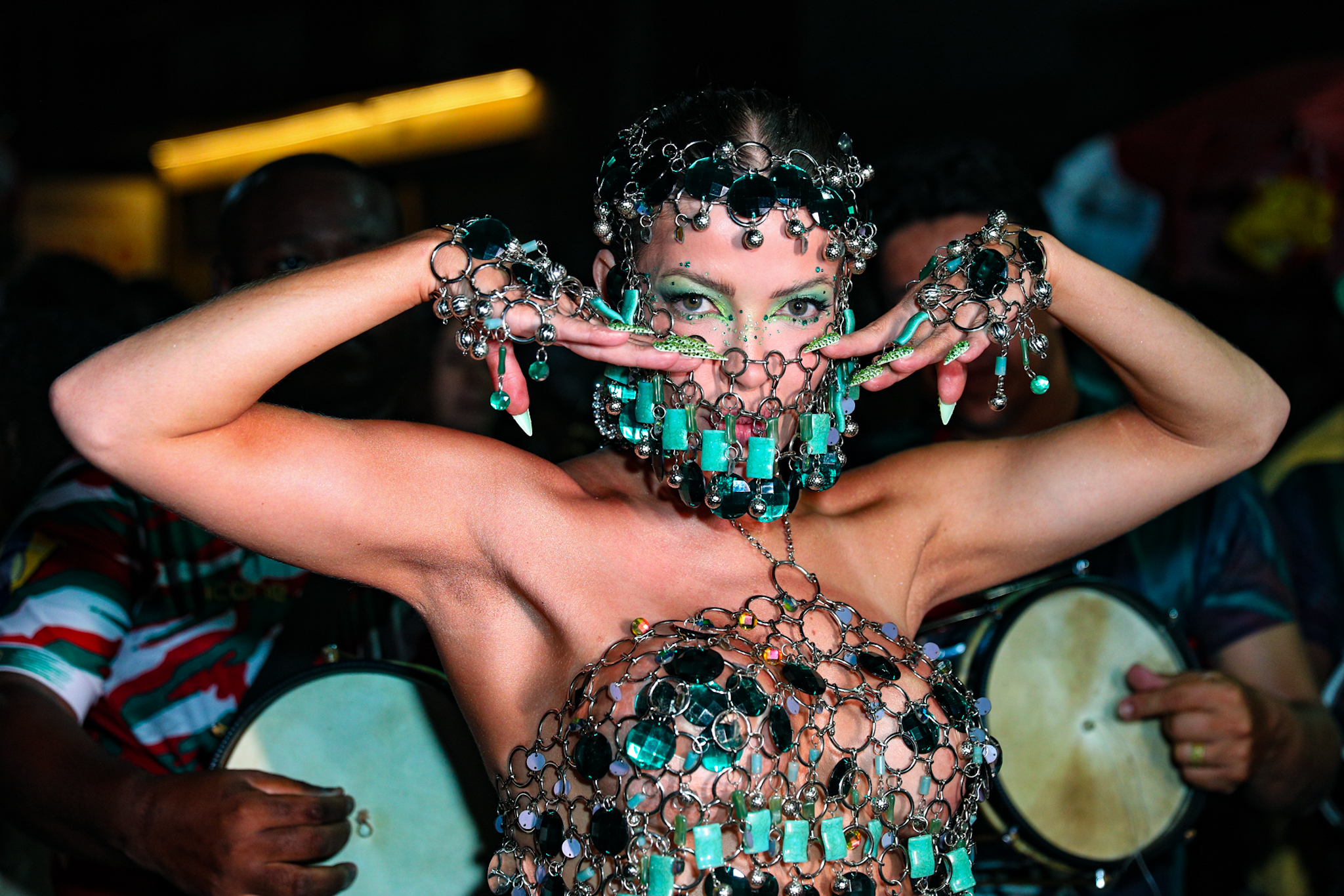 Thainá Oliveira, Jacqueline Grohalski e Eduarda Gutierrez também marcaram presença de forma destacada, demonstrando entrosamento e desenvoltura ao longo do desfile técnico. As musas circularam entre concentração e apresentação, reforçando o clima de preparação da escola para a próxima temporada.