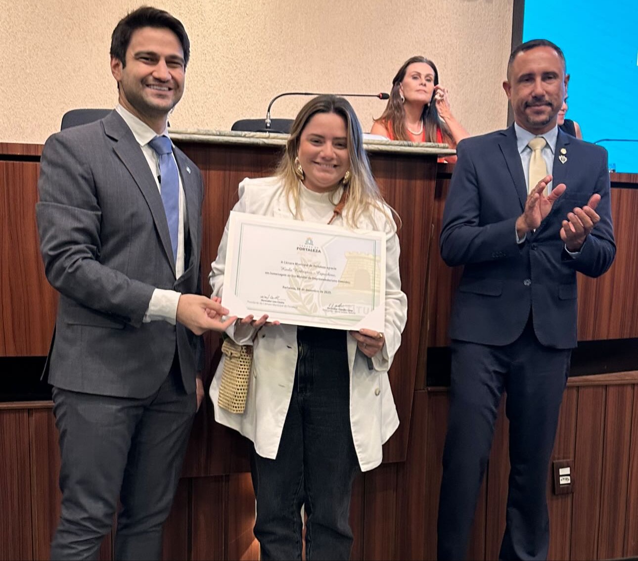 A Câmara Municipal de Fortaleza realizou, na noite de segunda-feira (8), uma sessão solene marcada por reconhecimento e representatividade. O evento destacou quatro lideranças femininas que se tornaram referência em suas áreas e que, por meio de suas trajetórias, contribuem para o impacto econômico, o fortalecimento de iniciativas locais e o estímulo a novas empreendedoras na capital cearense. A homenagem atendeu ao requerimento do deputado estadual Pedro Matos, formalizado por meio de proposição apresentada pelo vereador Cláudio Lima.